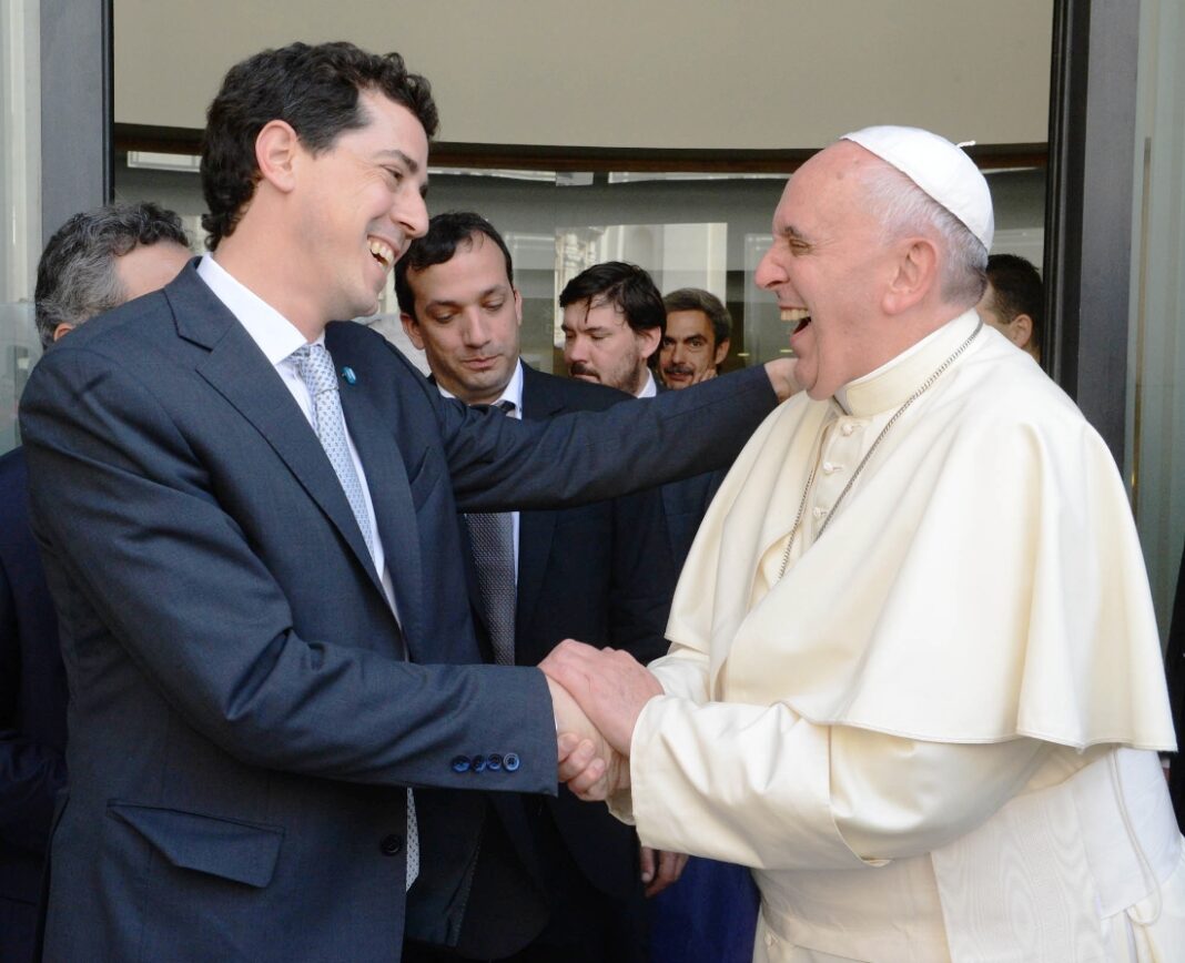 El ministro del Interior, Eduardo Wado de Pedro, se reunió recientemente con el Papa Francisco durante la gira que realizó por Italia entre el 5 y el 8 de abril, durante la cual mantuvo una extensa audiencia privada con el sumo pontífice, que se dio a conocer días después de regresar a la Argentina. Wado de Pedro realizó una gira por Italia para mantener reuniones con su par de ese país, Luciana Lamorgese, y también presentar ante la Organización de las Naciones Unidas para la Alimentación y la Agricultura (FAO, por sus siglas en inglés), los planes articulados con las provincias para aumentar la producción de alimentos. En ese marco, el funcionario acordó un encuentro con el Papa en la sede del Vaticano, Santa Marta. Si bien no hubo comunicación oficial, trascendió que a lo largo de casi una hora y media ambos dialogaron sobre la situación en Argentina y la guerra en Ucrania. La visita anterior de Wado de Pedro al Vaticano había sido en septiembre de 2014, en el marco de un encuentro entre el Sumo Pontífice y la ex presidenta Cristina Fernández de Kirchner y es precisamente la foto que ilustra el artículo.