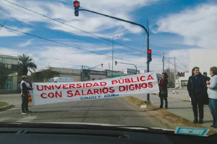 En ese contexto, desde la Asociación de Docentes de la Universidad Nacional de Luján (ADUNLu) reiteraron las demandas que sostiene este plan de lucha docente.