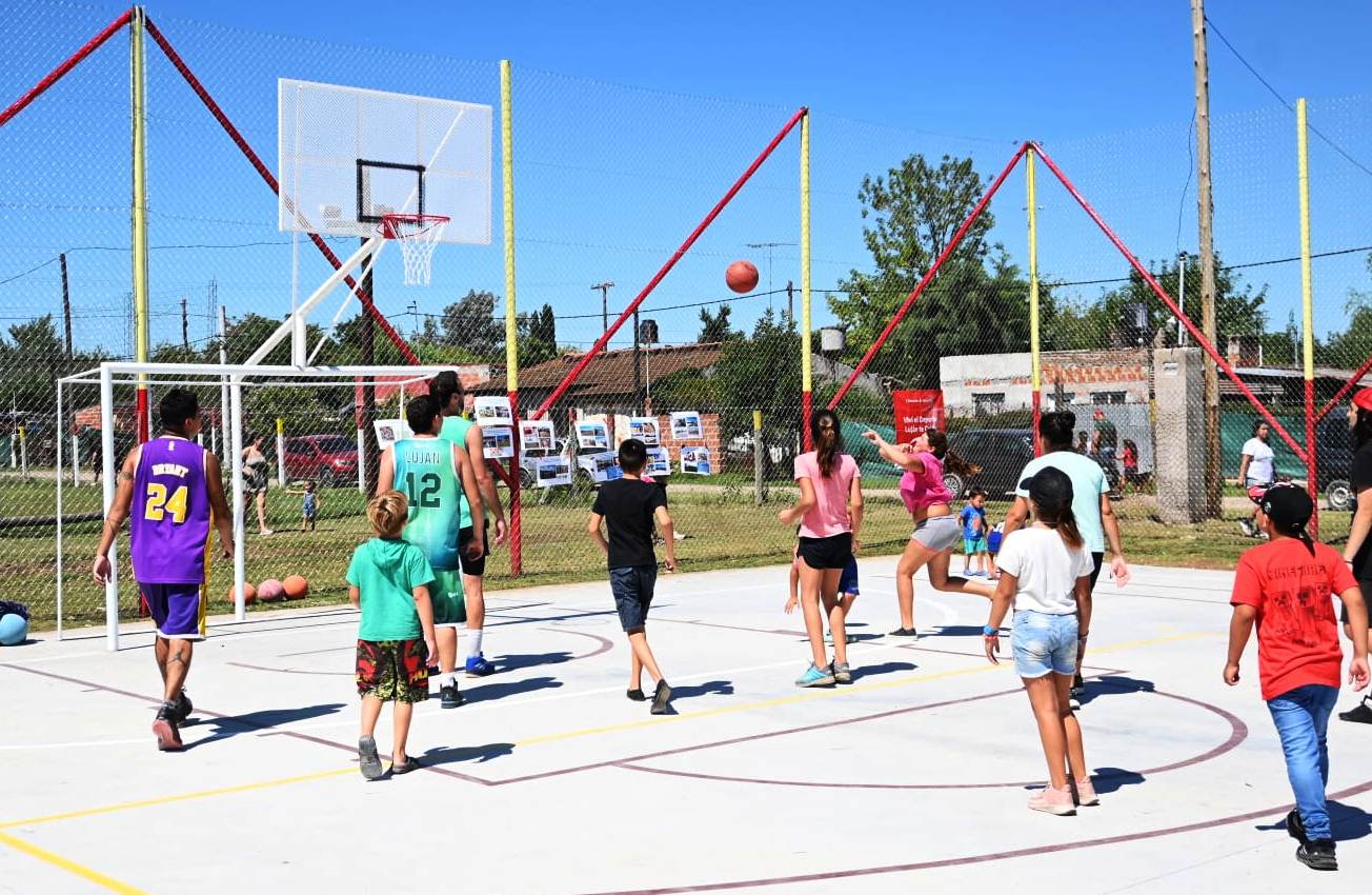 Acompañado por vecinos e instituciones comunitarias, el Intendente Leonardo Boto inauguró este viernes el nuevo playón deportivo construído por el Municipio en el barrio San Pedro. “Este playón representa mucho para el barrio, no solo la posibilidad de contar con una infraestructura deportiva, sino también un espacio para realizar actividades sociales y culturales. Seguramente se va a transformar en el corazón del barrio y como tiene iluminación lo vamos a poder utilizar también de noche. Quiero felicitar a toda la comunidad, que participó del proceso de elección del nombre y ya se está apropiando de este nuevo espacio. Trabajando por el otro construimos comunidad, encontrando intereses comunes que nos unan a todos. Vamos por un 2022 con paz, tranquilidad y mucho trabajo para seguir recuperando Luján”, expresó el Intendente en el corte de cintas. Durante el acto se bautizó al flamante playón con el nombre de “Don Beto Ávalos”, antiguo vecino del barrio y pionero en la creación del predio donde se construyó la nueva infraestructura. En este sentido, el acto fue acompañado por sus hijos y nietos. Asimismo, se realizó un reconocimiento a los trabajadores a cargo de las obras de construcción. También se sumó a la inauguración la murga La Telesita y los miembros de Street Basket Luján, que realizaron una clínica de básquet para los chicos y chicas del barrio. El nuevo playón se encuentra en la intersección de las calles Las Hortensias, Dr. José Salas, Las Camelias y El Trébol, junto a la sede del Club de Fútbol Infantil «San Pedro», potenciando el sector como espacio de prácticas deportivas. La infraestructura inaugurada incluye un playón de hormigón con equipamiento multijuegos, acondicionado para la práctica de diversos deportes. También cuenta con un cerco metálico, luminarias LED con cableado subterráneo, cestos de basura y bancos.
