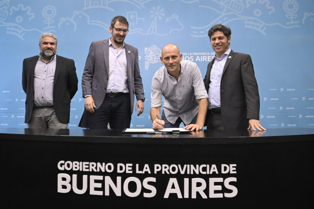 El gobernador de la provincia de Buenos Aires, Axel Kicillof, encabezó este viernes junto al presidente del Banco Provincia, Juan Cuattromo, un nuevo acto de firma de contratos de leasing por $8.824 millones para la compra de bienes de capital en 28 municipios bonaerenses.